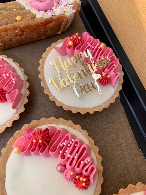 Disclaimer: pictures are from last year's box to give an impression, this year's box will look different + a picture from the Valentine's menu to show what the tartelettes look like