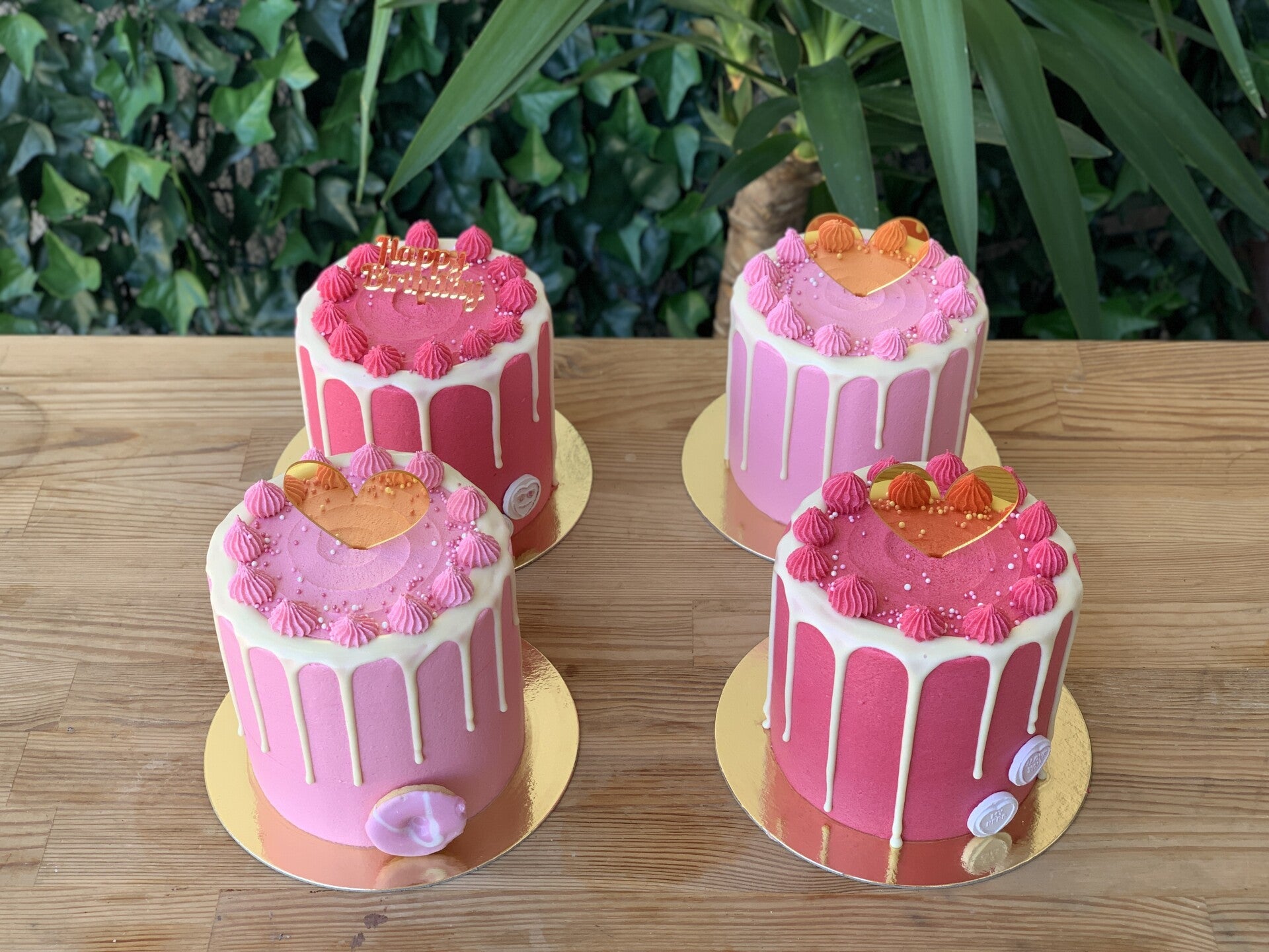 A cute mini cake, packaged in a box and tied with a ribbon. Perfect as a gift!